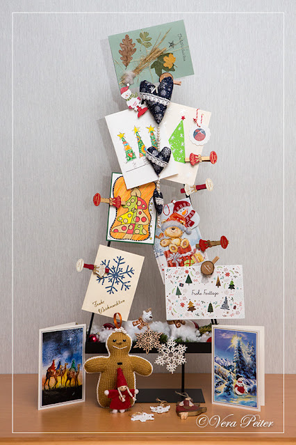 Ganz viele liebe Weihnachtsgrüße haben mich in den letzten zwei Wochen erreicht. Einige Blogger sind wahre Künster im Umgang mit Pinsel und Stift und andere können wunderschöne Handarbeiten machen. Es war die pure Freude, dass ihr alle so lieb an mich gedacht habt. Hier noch einmal ein dickes Dankeschön an euch alle. Eure schönen Karten mit all den lieben Worten und Grüßen sowie die hübschen Geschenke hängen nun an einem Ständer, der auf dem Sideboard im Esszimmer steht und erfreuen mich jeden Tag.